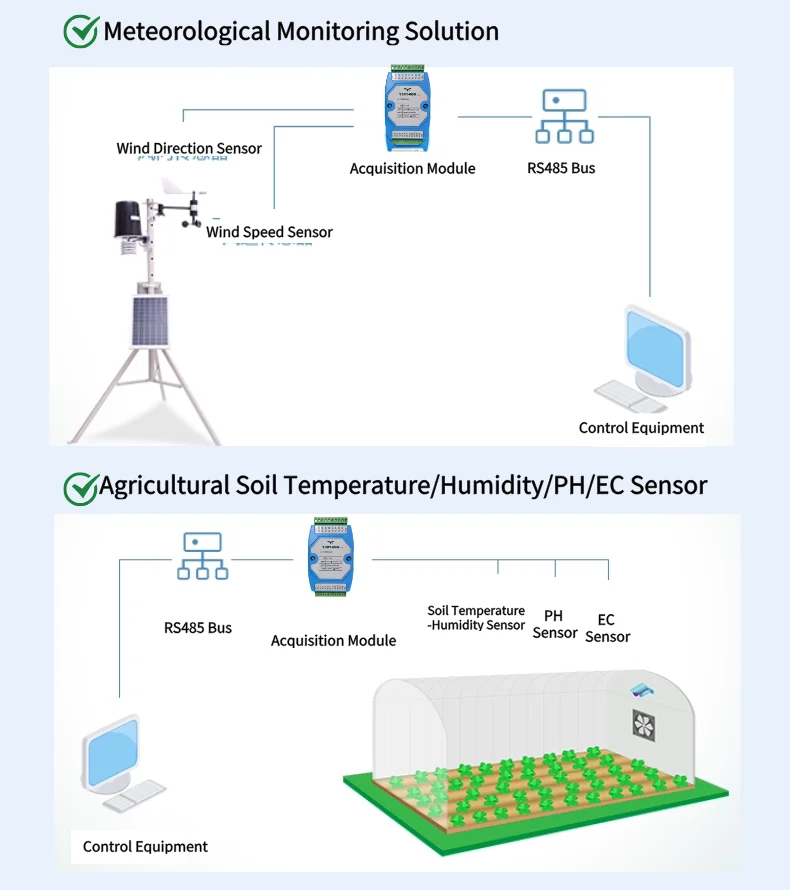 Covers distributed sensor network needs: agriculture (soil monitoring), industry (equipment status), environment (weather stations), water conservancy (liquid level collection), etc.
