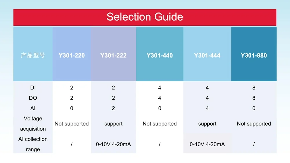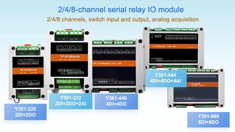 Flexible Configuration: 2/4/8-channel DI/DO options; some models support AI analog acquisition with switchable voltage/current input, adapting to diverse scenarios.