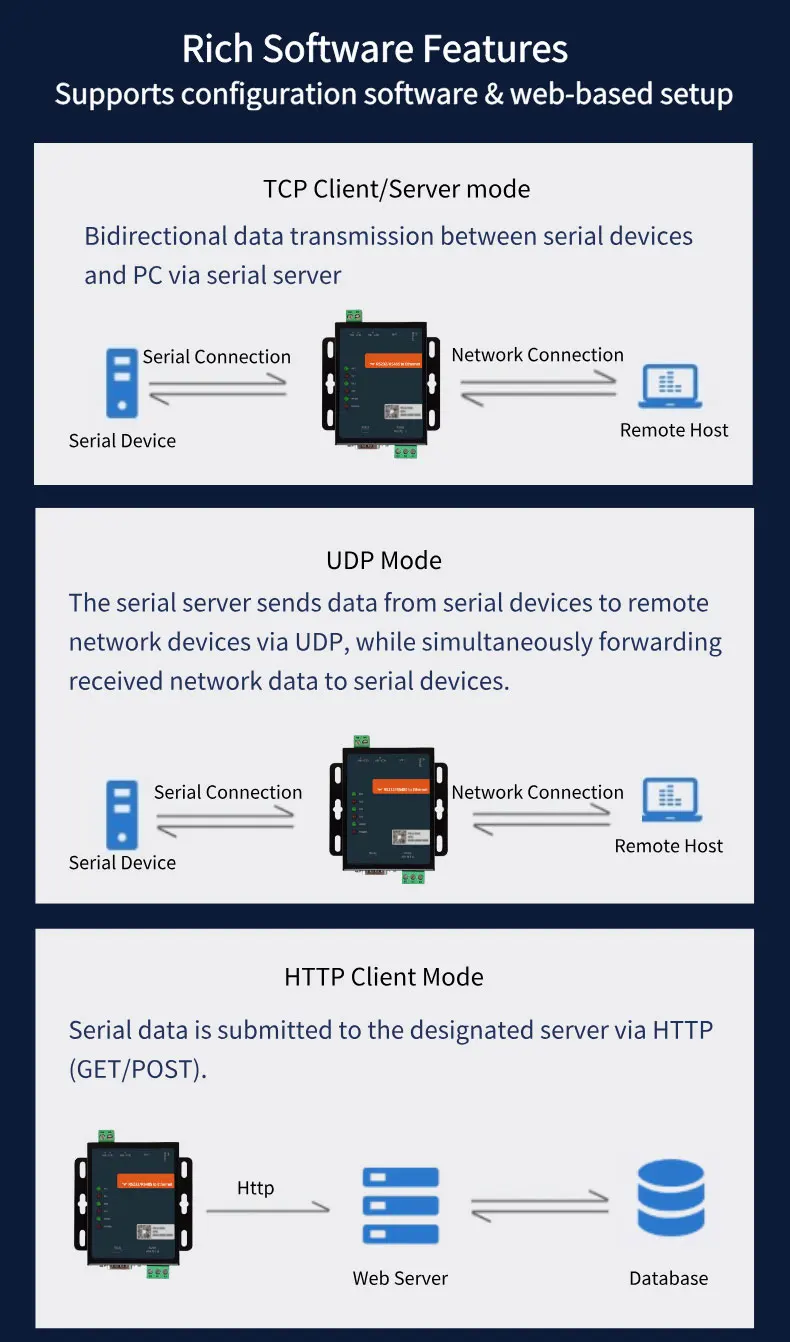 ►Application Scenarios: Smart factories, sensor monitoring systems, and network upgrades for legacy serial devices.