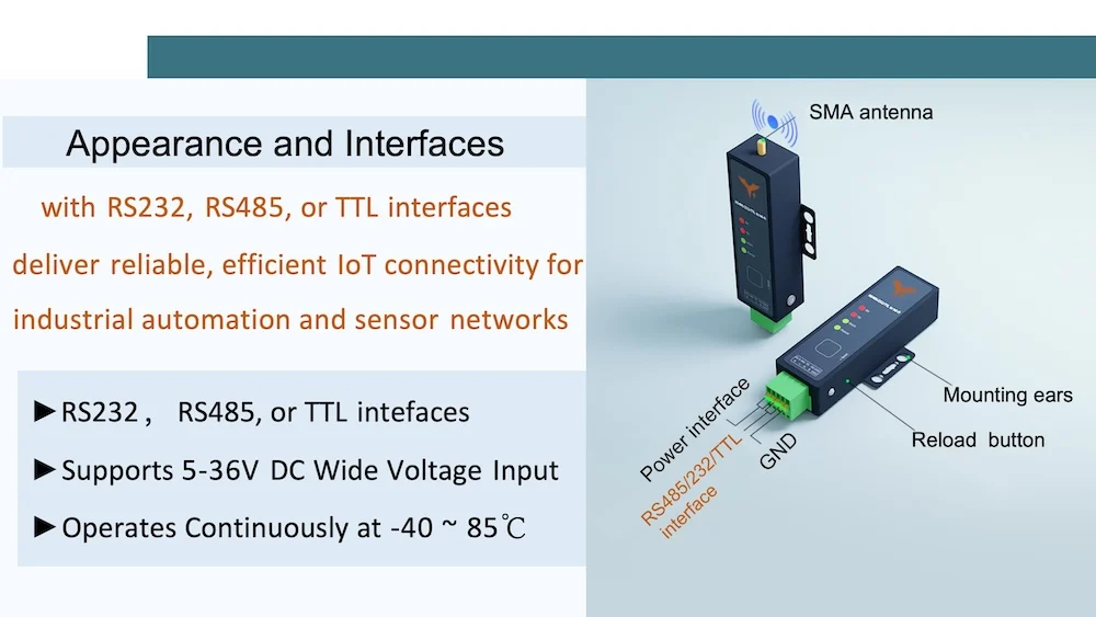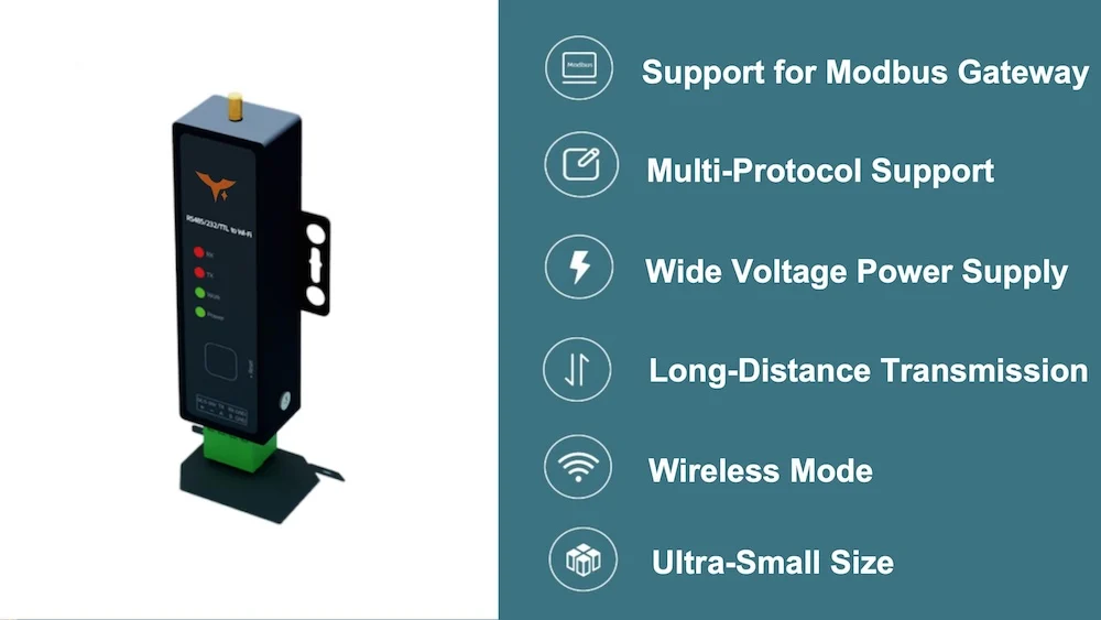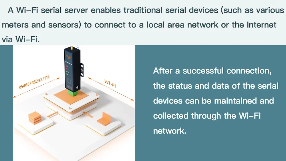 ▲Full Compatibility Interfaces: RS485/RS232/TTL to Wi-Fi Conversion;