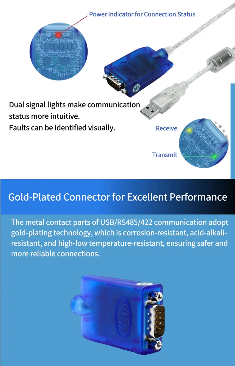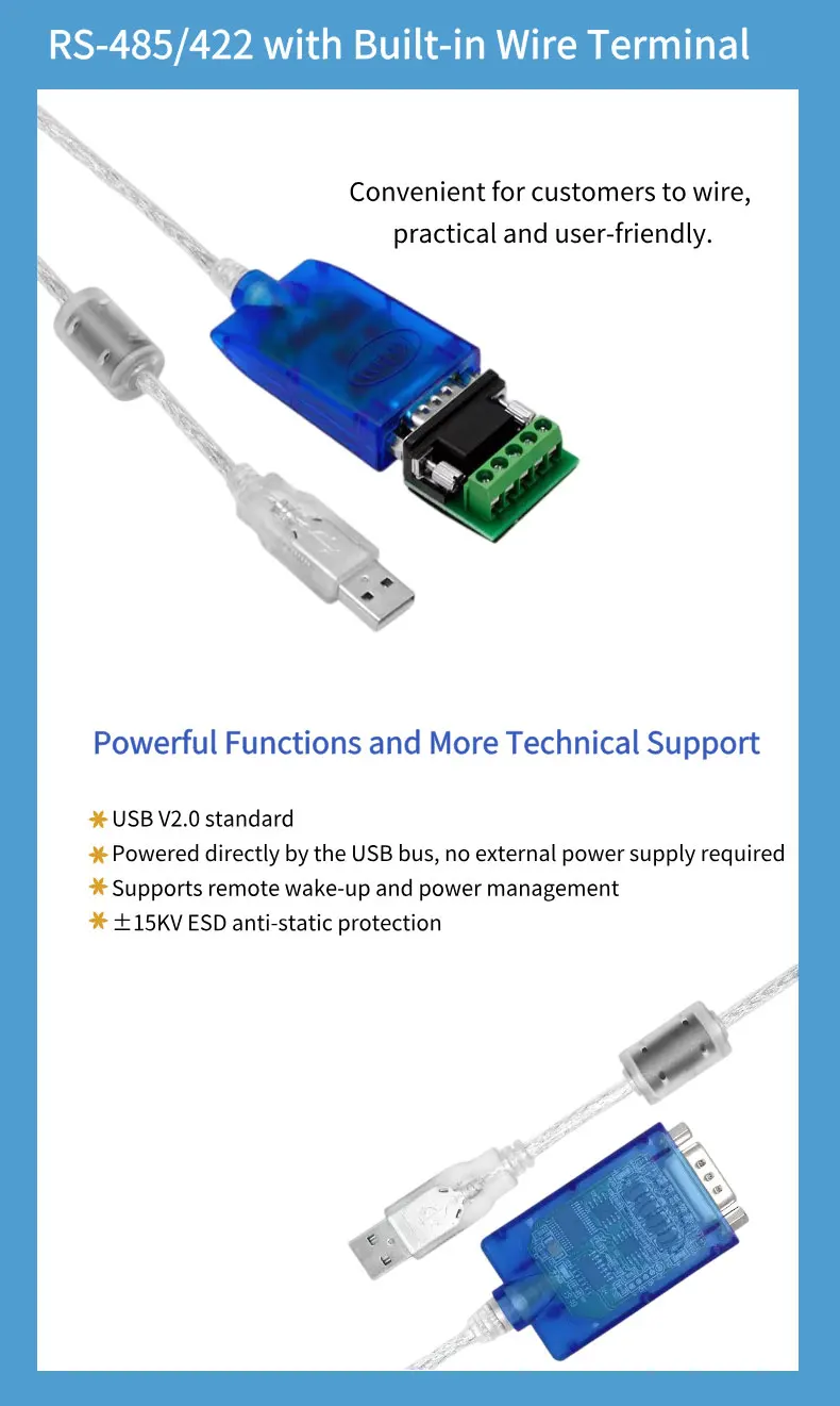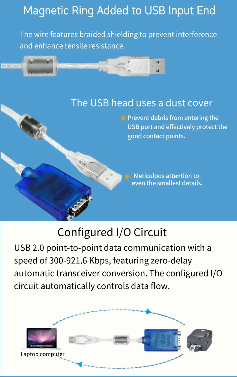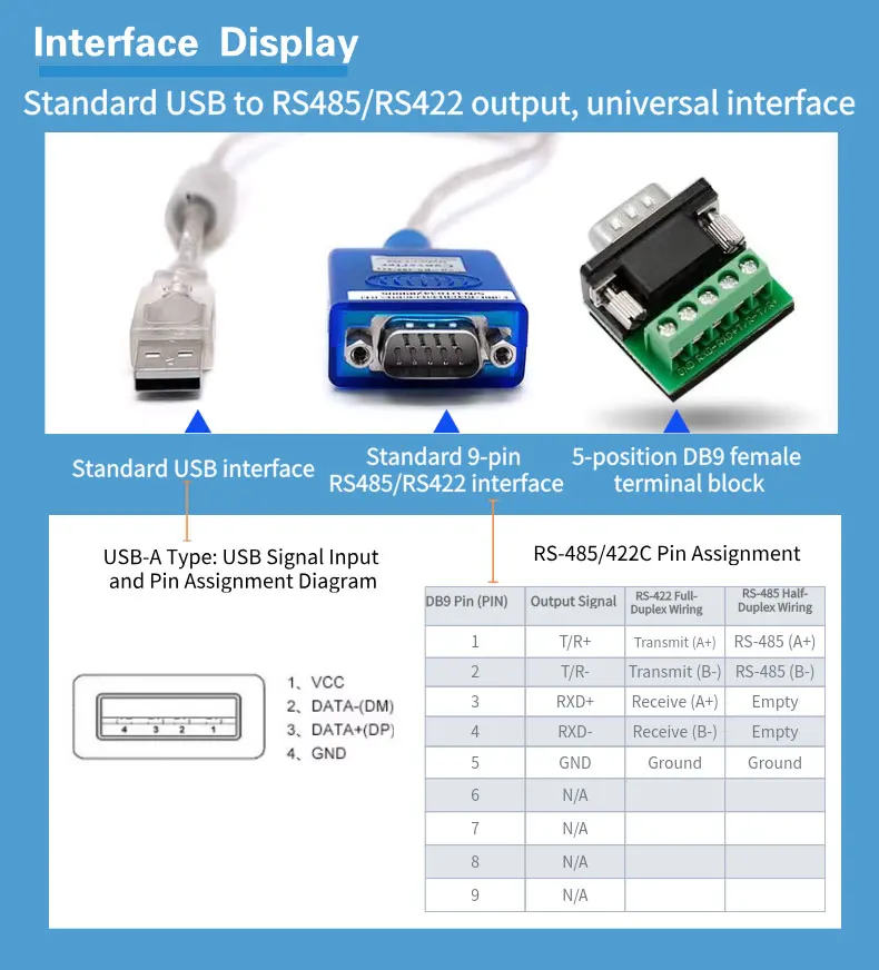 ● Port: USB-A male, DB9 male